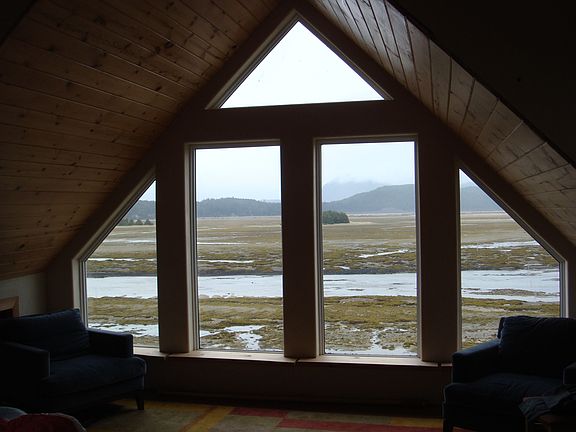 FIVE ACRES WATERFRONT plus a wonderful Cabin just a 1/4 mile before Bayview Subdivision North Douglas! Amazing views of Gastineau Channel, wildlife, wetlands and even the Mendenhall Glacier! Quaint, yet roomy, 3 story cabin could easily sleep 6-10 people. Large deck, beautiful forests, hot tub, generator, propane lighting, propane heating, woodstove, shed and lots of FUN! All kinds of options with this property, although access is limited to a 5-10 minute walk.