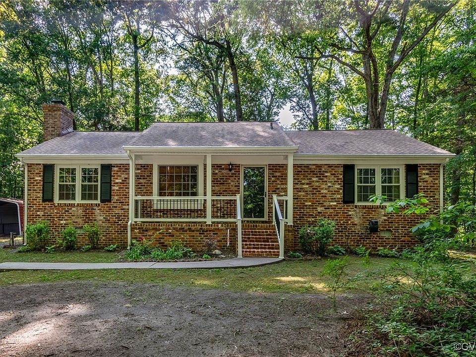 Check out this charming updated brick rancher on a private 1.5 acre lot! This lovely home features 3 bedrooms and 1.5 bathrooms. As you step inside, you'll notice the fresh paint throughout. The living room boasts a stunning floor-to-ceiling stone fireplace. The kitchen and bathrooms have been beautifully updated, and hardwood floors run throughout the home. Updates include the roof, HVAC, water heater, appliances (all convey), porch, soffit, and trim. A vapor barrier has been recently installed in the crawl space, and the driveway has been graded and topped with gravel, providing plenty of parking for family and guests. Enjoy peaceful surroundings while being close to shopping, dining, and the trails at Pocahontas State Park. What are you waiting for? Come see it for yourself!