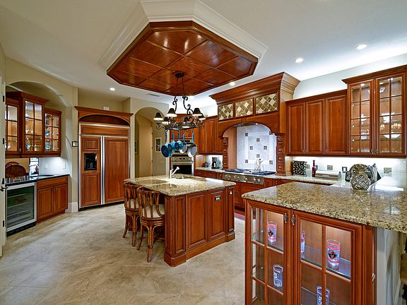 - Interior Features: Ceiling Fans(s), High Ceiling(s), Master Bedroom Downstairs, Split Bedroom, Vaulted Ceiling(s), Central Vaccum, Crown Molding, Walk-In Closet(s), Open Floorplan, Solid Surface Counters, Eating Space In Kitchen, Built in Features, Tray Ceiling(s)