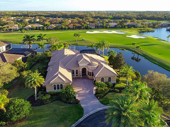 Impressive waterfront home with a view that will make everyone happy every time you look outside. Custom built by Lee Wetherington and loaded with upgrades, and finishes that will make you smile. Check out the 3-D video tour on the virtual tour link to have a virtual tour experience. Located on a premium end of the cul de sac peninsula lot in the exclusive and gated "Shores" section of Waterlefe the site is special. Imagine departing from your private boat dock you have access to the Manatee river, waterfront restaurants, and the Gulf of Mexico. The home is unique in that is one of the largest all on one level including two bonus rooms, den, and all in suite bedrooms. With a opulent entrance opening to the living and dining areas and a transom aquarium window brings that amazing view inside. Open concept that flows well into the large breakfast area and family room. The kitchen is a work of art with pro level appliances, dual dishwashers, natural gas cooking, premium wood cabinets, prep sink, and granite. The master bedroom is very bright and airy with extensive windows, two walk in closets with California systems, and a roman style shower, tub, and dual vanities. Additional three guest rooms are all set up with their own private bath. Outdoor living space features an large covered area with gas fireplace, and summer kitchen pool and spa. Recently rebuilt dock with new trex decking and led-lighting and 10k boat lift too. Be sure to click the VIRTUAL TOUR to see the 3-D interactive tour.