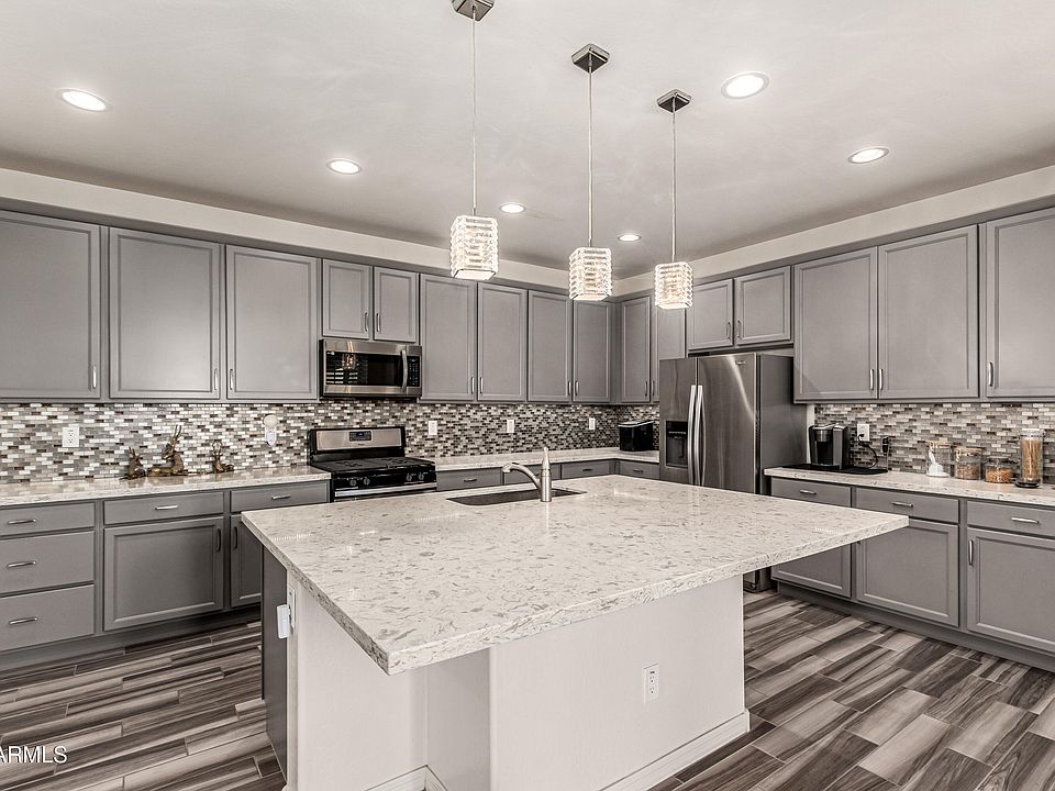 Immaculate & Move-In Ready! Perfectly set on a corner lot, this 3 bed, 2.5 bath + den home with a 700+ sq ft oversized 3-car garage offers style and flexibility. Fresh exterior paint, a pavered driveway, and welcoming porch create standout curb appeal. Inside, enjoy upgraded tile floors, brand-new carpet, and plantation shutters. The den is ideal for work or hobbies, while a secondary bedroom features custom barn doors. The chef's kitchen wows with quartz counters, 42'' cabinets, pantry, and sit-up island. Dual primary suites include spa-style baths and walk-in closets. Outdoors, enjoy three separate living spaces—a charming front porch, a relaxing side patio, and an expansive covered back patio overlooking a landscaped yard. Full of light, warmth, and charm—this one is a must-see! Each of the two primary suites includes a generous walk-in closet; one boasts a spa-inspired soaking bath, while the other features a walk-in shower. Enjoy the expansive covered patio, side patio, and beautifully landscaped yard perfect for entertaining. An oversized garage completes the package with ample room for storage or a workshop. This light and bright home is full of warmth and charm. Come see it and fall in love!