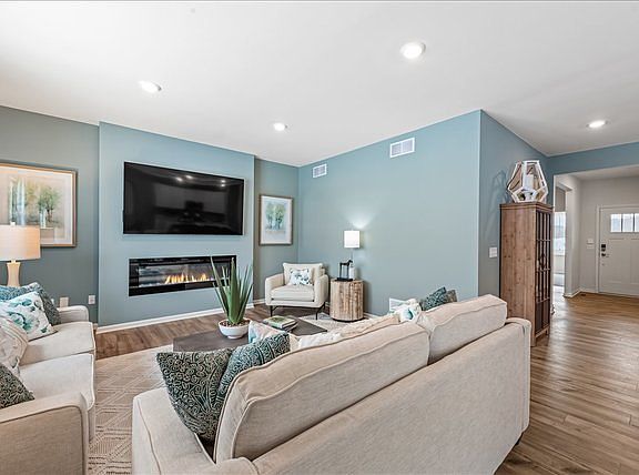 THIS HOME IS A QUICK MOVE IN FOR November 2024!!! Andare at Talamore offers low maintenance lifestyle, amenities, pools, clubhouse & more! The Rutherford floorplan is a great layout with 3 Bed, 2 Bath, and 1776 Sq Ft. This home features Lennar's "designer" upgrade package including 42" Aristokraft cabinets, quartz countertops, GE SS microwave/dishwasher/gas range, a built in kitchen island, Shaw vinyl plank flooring... Kitchen is spacious with center island, and opens to the family room. 9' ceilings. Smart home features like Ring video doorbell. The new homes are built to today's energy codes, and will help you save money on utility bills! Low maintenance exteriors includes partial brick, a 30 year architectural roof shingle, fully sodded yard! HOA includes most exterior maintenance so you can kick back and enjoy! Conveniently located just off of Rte. 47, this community features an 8000 sq ft clubhouse with a fitness center, game room, kiddie pool, spray and play area and a swimming pool with an 18-foot water slide, fishing pond, parks on-site, and more! Come experience Talamore living today and see why this community is the place to be! Pics are of previously built home, NOT actual home. Please reach out with questions on actual finishes!