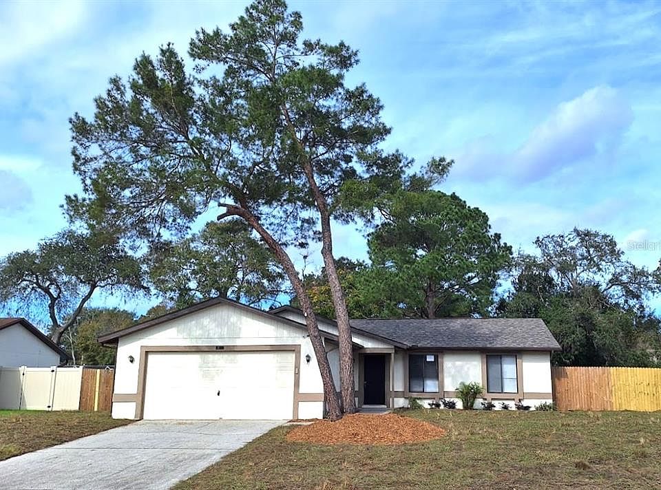 A Warm and Inviting Home with the BRAND NEW ROOF in The Glen of River Ridge Community. Discover this highly desirable community and be charmed by this beautiful 3-bedroom, 2-bathroom, 2-car garage home with the brand new lawn, newer AC (2017) and newer water heater (2017). The open floor plan creates a welcoming atmosphere, complete with a cozy fireplace and beautiful laminate flooring in the living room. The new updated kitchen with granite counter tops and brand new appliances features a massive pantry and ample cabinet space to store all of your cooking essentials. Fully fenced, the backyard provides privacy for your family to enjoy. Bask in the Florida sunshine on the patio, perfect for outdoor entertaining or relaxation. Centrally located with easy access to Tampa, you can have the best of both worlds – a serene community and close proximity to all that you need. Take advantage of the nearby schools, shopping, and restaurants. Don't miss out on the chance to call this remarkable house your home.