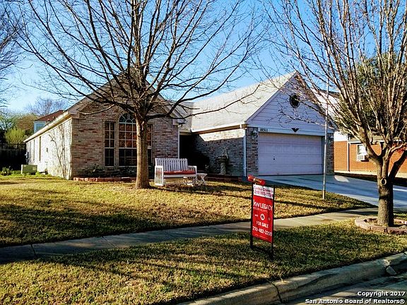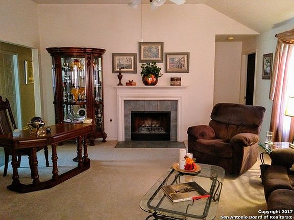 Beautiful, Move-in ready home in small subdivision in Converse* All brick Pulte built home with a nice, airy open floorplan*Italian slate floors in hall*High ceilings and gorgeous wood burning fireplace*Large secondary bedrooms*Jetted soak tub in master bath with seperate shower*Patio slab in landscaped backyard along with a metal shed for those weekend projects*Front entry has expanded sitting area for that morning coffee*This home is minutes away from Northeast LakeVw, Randolph AFB, Fort Sam, and 1604!