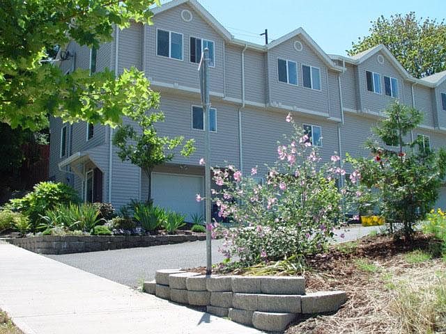 Lovely 3 Bedroom, 1 1/2 Bath Townhome with private, fenced backyard patio/garden in St. Johns (North Portland) area. Super easy commute to freeway. Fred Meyer/Safeway/New Seasons are all close for shopping. In secluded 4-plex with very nice neighbors. On the north edge of town, surrounded by a lot of green space, with 40 mile bicycle and walking path along nature preserve nearby. (Full disclosure: also near a train and now defunct industrial area) Available between August 8-10, 2025. Showing/tours on Saturday July 12th, 9:30-5:30. Contact Melanie for an appointment time on Saturday. 3 levels: 1st level has driveway, oversized single car garage, entrance and stairway up to main level. This allows private parking for 2 vehicles (one in the driveway, one in the garage) at no extra charge! Plus there is free street parking. The garage has plenty of room to open your car doors and a lot of storage space at the back. Many people have used the extra space as a playroom/music room/or hobby room... or just use it for storage and save on renting a storage unit (425 sq ft parking and/or storage in garage) 2nd floor has open layout with living room, dining area, large walk-in closet, a natural gas fireplace and access to the back garden. The kitchen has an island like seating area, stove, fridge, in-sink disposal, oak cabinets and laminate flooring. There is a 1/2 bath on this main floor. The laundry closet off the kitchen has a washer and dryer installed and ready for use which can be rented for $25 per month and I'll cover any repairs as needed. Very inexpensive and handy laundromat! If you choose to use them without the rental fee you can and cover any repair costs yourself. The patio and garden area in back are fenced for privacy. The area is 15'x20' with a small cement patio surrounded by planting space. This garden has a large climbing rose in one corner and a few small bushes allowing space for you to choose your own flowers and vegetables as well. Lots of south facing sun and private water access. Garden maintenance in this area is the tenants responsibility. The 3rd floor has a full bath with entry from the hallway, and a private entry from Master Bedroom. Master has 8' closet. Linen closet and the smaller 2nd and 3rd bedrooms are at the front of the house. Our location is fairly secluded with a lot of green space, but we are near a train, so I suggest using earplugs at first. The main photo was taken some years ago and I include it so you can see what the building looks like... but our tree plantings are now more mature and we are surrounded by lovely trees. Main heat is electric wall heaters, but the living room also has a natural gas fireplace as a very efficient and homey alternative for most of the year. Contact Melanie to arrange viewing. This has always been a Non-smoking property. 2 parking spaces included with rent: one in garage and one in private driveway. Lease is for 1 year. Deposit is $2195 and can be broken into 3 payments - 1st one due on lease signing. 2nd due on move-in. 3rd due with 2nd months rent Heat is electric and natural gas fireplace. Water and garbage service are included in rent. Tenant pays electricity and natural gas for fireplace. Pets are allowed with references, a $400 deposit per pet, and $25 per month rent per pet. Some breed restrictions apply for insurance reasons. Private, fenced garden maintenance is responsibility of tenant. Renters Insurance is required.