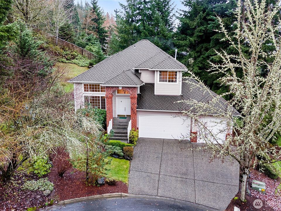Situated on a cul-de-sac in the Bridlewood neighborhood, this inviting 2 story home offers a classic floor plan w/ both formal & casual living spaces. The formal living room features vaulted ceilings & large windows that bring in abundant natural light. The kitchen opens to the great room w/ a cozy fireplace & views of surrounding greenery. Upstairs includes a generous primary suite w/ 5-piece bath plus 2 additional bedrooms. Set on a .43-acre lot backing to native growth, enjoy privacy, an entertainment deck, grass area & flower beds. A 3-car garage w/ high ceilings offers excellent storage. Located near Blythe Park & the Sammamish/Burke-Gilman trails, providing easy access to outdoor recreation while still feeling like a peaceful retreat.