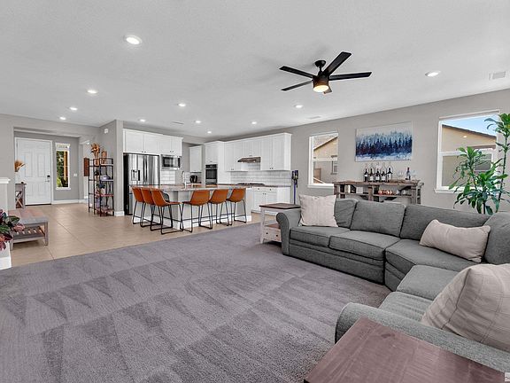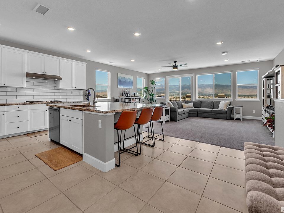 Enjoy the exquisite views of the Mountains, City, Valley and evening sunsets in a spectacular luxury property! This well sought after Palatino model is located in the Viewmont at Palisades. This home features an open floor concept full of natural light . You will find the master suite and one additional bedroom and bath on the main floor with 2 bedrooms and bath downstairs. This luxury property also includes the smart capability to control garage, ovens, thermostat and even lock/unlock the front door., The gourmet kitchen is fabulous for entertaining with its open concept, granite counters, white tile backsplash, large island, coffee/wine bar, large pantry, double ovens, and gas stove top. Enjoy the separate dining room away from the kitchen preparations. The balcony off the large living/family area will allow you to enjoy those incredible views from all angles on the main level and downstairs. The bonus room downstairs is supplied with a wet bar which includes a microwave, mini frig, and plenty of counter for entertaining. The 2 bedrooms and bath downstairs offer privacy and separate living capability. The backyard is complete with covered patio for your outdoor entertaining, pavers and fully landscaped to continue taking in those breathtaking views. Come see for yourself! Ring cameras are on the premises. PLEASE GIVE SELLER 2 HOURS NOTICE PRIOR TO SHOWINGS.