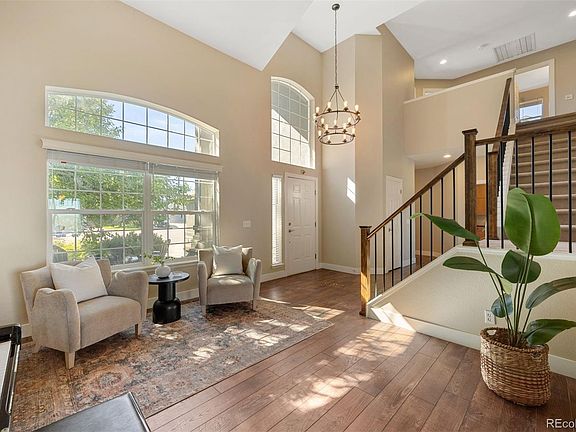 Nestled in a serene cul-de-sac in Highlands Ranch, this home is where breathtaking mountain + sunset views happen daily. Enjoy mature trees and a serene pond, set against a backdrop of beautifully manicured, landscaping. Step out onto the expansive deck off the kitchen and take in the sweeping mountain vistas. Inside, vaulted ceilings and an abundance of windows flood the home with natural light, creating a warm and inviting ambiance. Whether you're working from the private office, enjoying a quiet breakfast in the nook, or hosting a dinner party in the separate dining room, every space feels bright and welcoming. The spacious kitchen is perfect for cooking + entertaining, while the large primary bedroom, complete with a cozy reading nook overlooking the mountains, offers a peaceful retreat. Indulge in the luxury of the five-piece bath with its relaxing soaker tub.