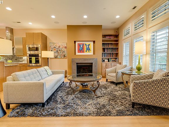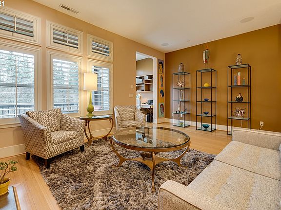 Adjacent Merritt Woods Natural Area this Peterkort Woods luxe townhome provides multiple office areas/flex spaces. Enjoy viewing nature from your covered back patio. Upstairs you will find 2 bedroom suites & laundry facilities.Downstairs is a bonus room, custom wine storage & generous 2 car garage. Bamboo floors, high ceilings, gourmet kitchen w/slab granite island, fireplace & custom builtins, wash/dryer incl. This home is situated near the clubhouse, pool & nature paths for convenience & ease.