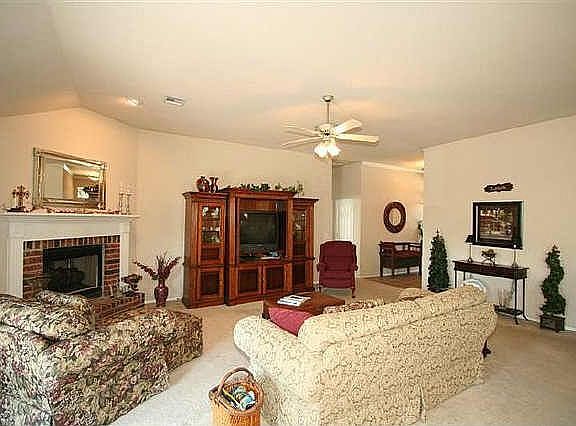 Split bdrm plan in this one owner, immaculate home.Open floor plan. Pantry,b/in micro,tile backsplash,dining bar & brkfst nook in kitchen. Gas log FP, tile flooring in all wet areas.Extended,cov'd patio w/tile.Prof landscaping-front & back.Security Sys.