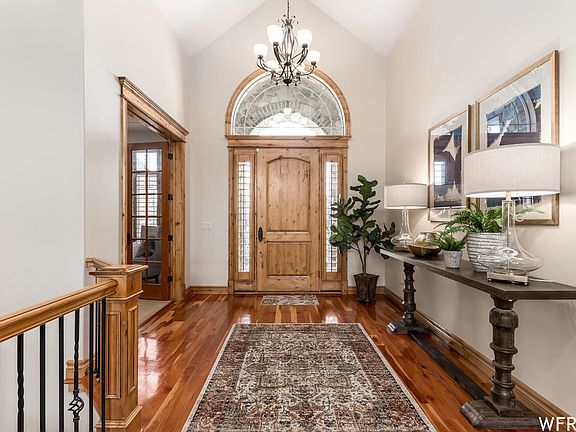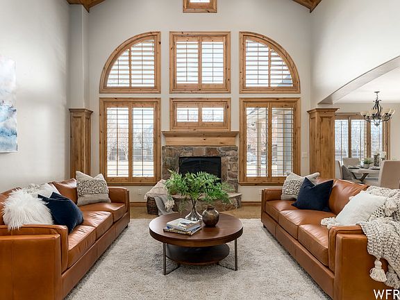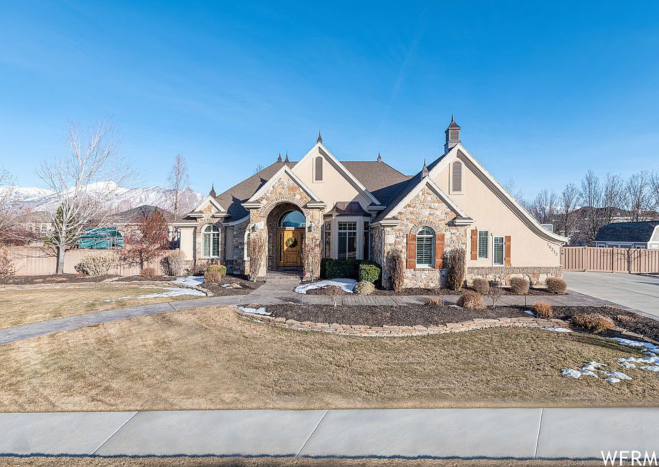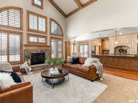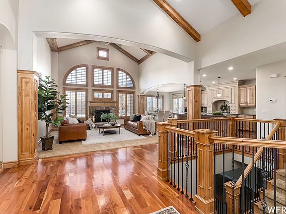 Price Reduced!!! Enjoy the Highland lifestyle in this stunning home nestled in a highly sought after neighborhood featuring incredible mountain views out of the large picture windows. Extra high ceilings throughout the home with exposed beams create a bright, open feel. Main level features a large master suite with a relaxing and private feel. A second bedroom on the main floor that is perfectly suited for a caretaker suite, private office area, or even a possible mother-in-law/ guest residence with it's own separate entrance. The kitchen and dining area are perfect to entertain guests, a massive walk-in pantry, and access to the large outdoor patio with one-of-a-kind backyards. Entertaining is a breeze in this home as there are multiple areas including the large covered patio out back, full-size grass volleyball court, putting green, olympic size rectangular trampoline, large swing-set and new custom fire pit with under bench led lighting. While in the private backyard enjoy the pond-less stream while you cross over the little bridge to sit on the bench and enjoy the yard. The walkout basement also features an incredible patio to enjoy a meal while you're surrounded by the beautiful rock walls with plants and vines growing in-between to give you the secluded look and feel all while having access to the rest of the backyard. This home boasts storage galore. The 2 car garage is excavated below and is ready for a home theater, gym, library, etc. The HVAC system is newer with high-end filtration with the help of ultra-violet lights to clean the air inside the home. The water heaters are also newer. So many features and details, that you have to see to believe.
