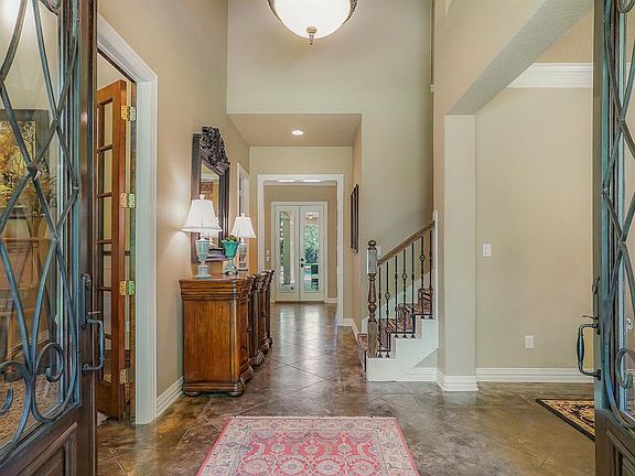 This gorgeous custom home sits on 1.6 acres. It features a 1,500 ft guest house that is set up for independent living with separate garage and entrances yet still "connected". The house has cut and stained concrete floors throughout. Large double beach entry pool with multiple water features. It really does feel like a resort. Complete with gas fire pit and plenty of room to entertain family and friends. The main house has room to spread out and with the 20ft ceilings you'll never feel closed in. Large living room and master bedroom with magnificent views of the backyard. Upstairs is complete with walk-in attic storage, plenty of closets, and a game/media room ready for movie night.