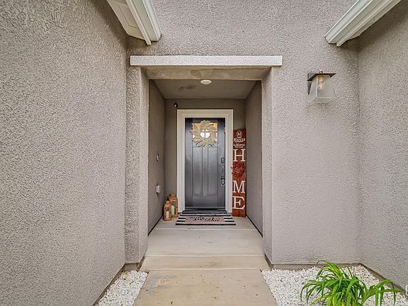 This DR Horton beauty is ready for it's new homeowner. This one has been well taken care of. As you walk in you are greeted with a tri wing floor plan. You have two bedrooms toward the front of the house and the other bedroom is in a different wing. The primary bedroowm also has it own wing and features a walk-in closet. The primary bathroom has upgraded counter tops and shower. The kitchen features upgraded countertops and overlooks the great room which is perfect for entertaining .The great room is good size.The backyard has been beautifully landscaped, cement slab, gazebo with lighting and possible rv parking. This one will give you new home feels but with plantation shutters throughout and the driveway has been extended.