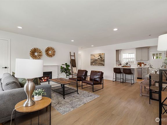 Gorgeous, remodeled & fully permitted home perfectly appointed on a serene quiet street in Crown Hill! Generous living room w/ cozy fireplace is bathed in natural light & adjoins the kitchen overlooking freshly landscaped yard. Private primary tucked away offers an elegant ¾ bath ensuite complete w/ all new finishes & fixtures including heated floors. 2 add’l beds w/ their impressive size, providing comfortable & expansive living spaces. Full bath + laundry finished w/ airy & bright elegant finishes. Updated electrical & plumbing, new panel, tankless hot water heater, mini splits provide efficient heating & cooling, EV ready for modern green living & more! Located mins from Carkeek Park, Met Market, dining, schools, & key commuter routes.