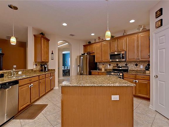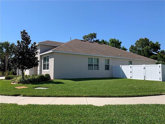 Don't Miss This One! Corner Lot with No Backyard Neighbors and Pond View from the front yard! This 2014 Taylor Morrison built home has almost 2800 square feet and features an open floor plan, cathedral ceilings and crown molding. Tucked away in the quiet community of Avelar Creek this 4 Bedrooms, 3 Bathrooms, Den and 3 Car Garage, covered with epoxy for easy cleaning, shows better than a Model Home! The layout with a large great room, open kitchen and split bedroom floor plan for privacy and entertaining. Open kitchen has 42" wood cabinets, beautiful granite counter tops, stainless steel appliances with gas oven. Island Cabinets are equipped with metal racks for easy access to stored items. Ceramic tile covers the main living space and all wet areas. The Master Suite is spacious with large closets and a spacious Master Bath with a double vanity, garden tub and walk in shower. Secluded office is away from hustle and bustle of the living area in the house. Home has hurricane shutters, interior in wall pest control system, security, a water softener, decorative curbing, storage shed, back gate for easy side access to the yard and the washer and gas dryer convey!