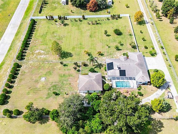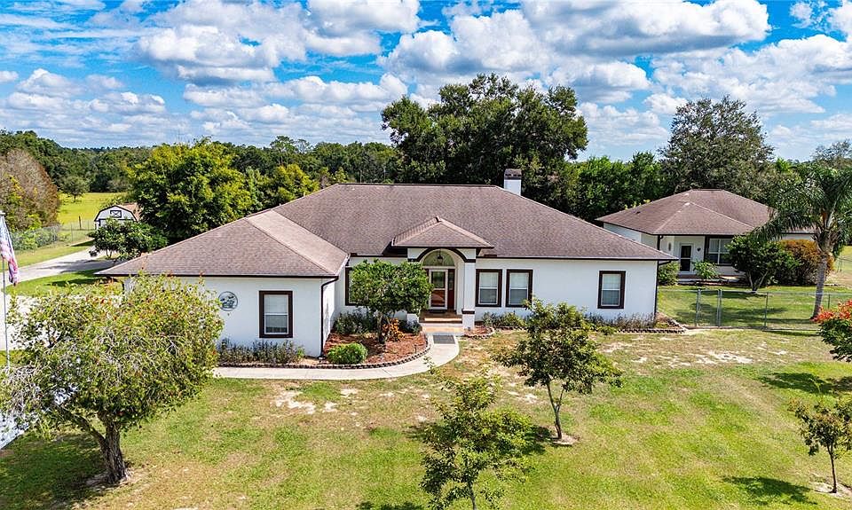 One or more photo(s) has been virtually staged. ACREAGE, HOUSE, DETACHED IN-LAW & ZONED AGRICULTRUAL!!!! Everything you need on this 2.59 acres. Lets start with the main house featuring 2691 sq feet of heated and cooled living space and 4 generously sized bedrooms and 3 full bathrooms. Features such as split bedroom floor plan, high ceilings, a great room with fireplace and am OVERSIZED 4 car garage. That's not all, the screen enclosed "SOLAR HEATED POOL" offers tons of space for outdoor entertaining and once you open the pocket sliding glass doors of the house the entertainment space spills into the home. The Primary bedroom features hardwood floors, high ceilings, private entrance out to the pool and a huge bathroom with a walk-in shower that was just re-tiled, jetted soaking tub and HUGE walk-in closet. The oversized utility/laundry room has lots of cabinet space, counter space and a wash tub and is located right off the garage. The DETACED IN-LAW APARTMENT features high ceilings, HUGE living room and an OVERSIZED bedroom & Bathroom plus a 1 car garage along with its own fenced in yard. This property is zoned agriculture and allows for chickens, cows, horses, sheep, goats and farm animals and gardening. Situated in the rolling hills of Dade City and all the quaint shops & eateries of downtown Dade City or just a short drive to Zephyrhills, Wesley Chapel or Tampa. of the