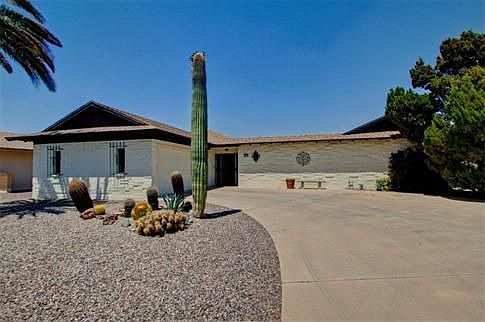 Unique Villa Rosa model offers 6 sets of sliders that open to private patios from 5 different rooms. Now here's a fun floor plan! You enter thru a private walled atrium w/fountain & paver decking. Living room is vaulted & beamed + opens to atrium & rear patio. AZ room (Southwest flair) opens to atrium. Twin master bedroom suites each open to a patio, as does the kitchen dining nook. Rear patio is private & has tile decking. 3rd Bath for guests is adjacent to the AZ Room. Formal dining room is outstanding-allows you to entertain family & friends in style. 2-car garage has a side entry drive. New roof approx 2002. New heat pump Sept 1999. Furnishings (as you see it)are available outside of escrow for $2,500. Near Sun City Country Club for Golf + Mountain View & Fairway Rec Centers.