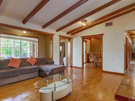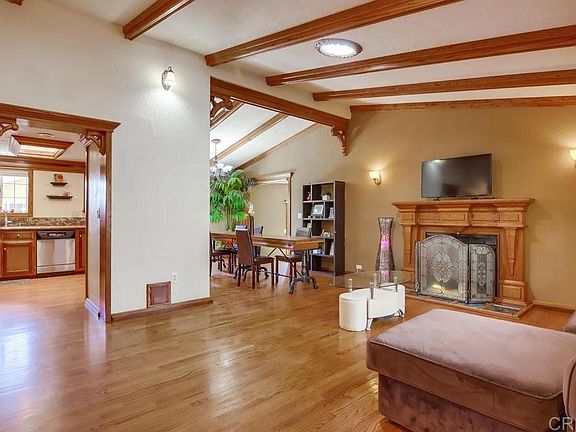 A truly uniquely beautiful home. Immaculate space with big open concept for a large family & entertaining. Huge beautiful kitchen with custom cabinets, granite, & stainless steel appliances create a fantastic chef space. Wood floors, beams, & built-ins create a cozy & warm space. Office balcony & backyard deck offers spectacular views & overlooks avocado, lemon, lime trees & more on your 12,054 sq ft lot. 1 room granny flat/separate bonus space detached. Solar Panels & turf are energy saving bonuses.