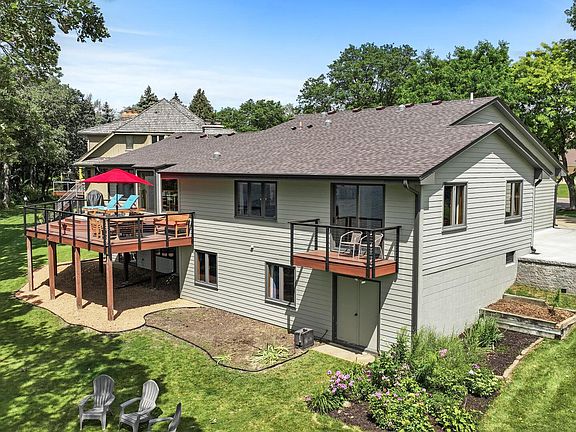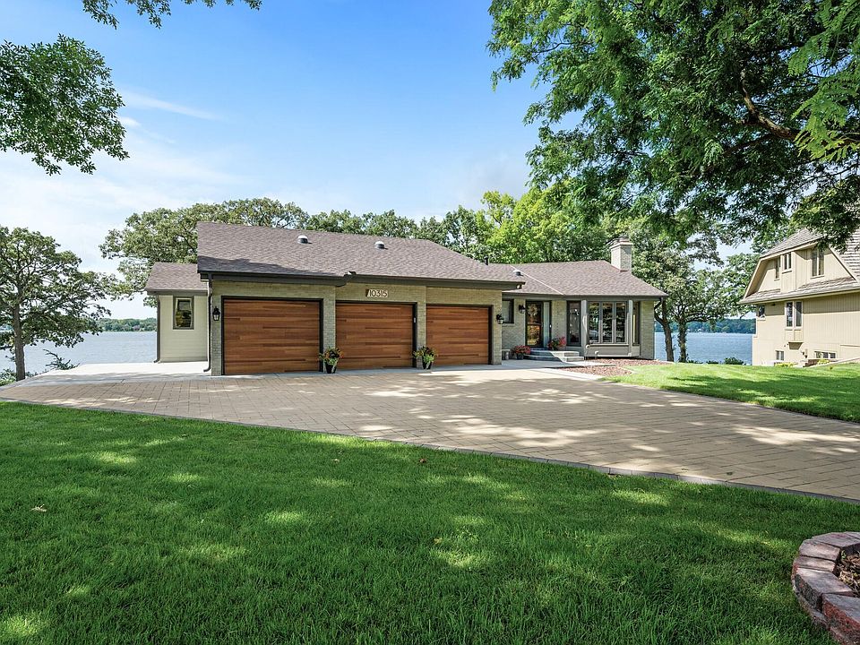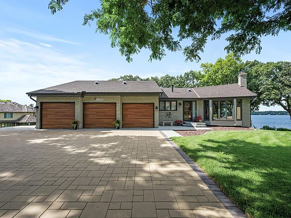 This second owner, lovingly cared for sprawling custom built rambler with walkout lower level is situated on a quiet cul-de-sac and features expansive west facing views of Medicine Lake from almost every room. Meticulously maintained and solid construction, exterior is cement board siding and brick. With all living facilities on the main level including laundry, this could easily be your forever home. When you open the front door you immediately are impressed with the lake view from a new 11' high window, and admire the spacious layout, Brazilian Walnut hardwood floors, custom iron railings, and beautiful stone wood burning fireplace. As you continue to the kitchen and formal dining area, imagine the views you’ll enjoy in every season from your kitchen, the dining room and the expansive maintenance free deck. With 6 large lakeside bedrooms (3 on each level), plus an office/den, there is plenty of space for your family, workspaces, and hosting out of town guests. In the lower level, explore the large family room with a second wood burning fireplace and wet bar, a home gym, storage room, and a heated workshop with direct access to the backyard, perfect for storing all of your lake toys. The irrigation system will keep your lawn looking fabulous all summer long. Take the stairs in the backyard down to the lake and imagine all of the memories to be made here.