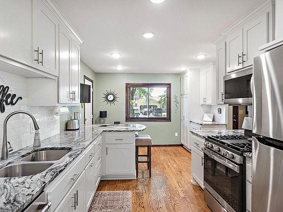 DON’T MISS THE MOST AMAZING HOME IN MAPLE GROVE AT THIS PRICE POINT! Perfectly nestled on a quiet beautiful lot in the Boundary Creek area! So close to 5,200 acre Elm Creek Park Reserve! Stunning kitchen remodel includes white cabinets (w/soft close), granite countertops and pristine oak flooring! Dining area flows into 4-season sun room that you will fall in love with. Walk out to a beautiful large custom stamped concrete patio and fenced backyard. 3 bedrooms on one level, walk-in closet in the primary bedroom. Don’t miss the extra unfinished storage room on this level! There is also a main floor bedroom that has a walk-in closet adjacent to full bath. Lower level has a smaller finished area for sitting or play area (not in photos). Unfinished area has plenty of storage available. Relax in the sauna that will stay with the home! Plenty of unfinished area available to build a workshop or have more finished space! Seller is including a 1 yr Cinch Home Warranty!