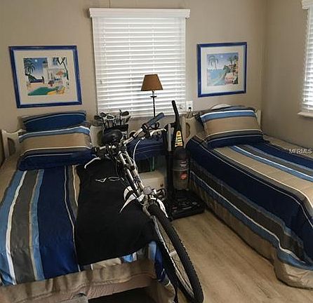 Two bedrooms and one full bath and one half bath...Park is located on the Sarasota Bay. Features: shuffleboard, bocce ball, rec hall, heated community pool. Marina (extra charge for slip and waiting list) Fitness room, library, hobby room, woodwork shop. Lots of planned activities for the residents. Bingo too!