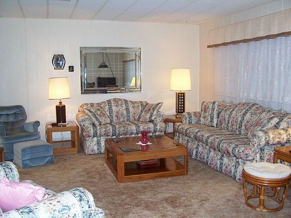 LET THE FUN BEGIN IN THIS SR. 55+ COMMUNITY! 2 BR & 2 FULL BATHS! UPGRADES INCLUDE A/C, STOVE & DISHWASHER. LARGE GRAND ROOM L-SHAPE TO A SPACIOUS DINING AREA WITH BUILT-IN HUTCH. LUNCH COUNTER BETWEEN KITCHEN & DINING RM. YOU WILL FEEL SO AT HOME IN THE COMFORT OF THIS WELL-CARED FOR HOME! FRONT ENTRY HAS AN ADD-ON SUN ROOM FOR QUIET MOMENTS OF RELAXATION AFTER A ROUND OF FREE GOLF! FREE GOLF! THE YARD IS SPACIOUS WITH SHADE TREES AND IT IS FENCED FOR SECURITY. NUMEROUS HOA PRIVILEGES - CLUB HOUSE, POOL, SPA, SAUNA, FITNESS CENTER, 2 FISHING LAKES & MUCH MORE. BUYER HAS 1ST CHOICE OF FURNISHINGS EXCEPT FOR THE UPHOLSTERED SETTEE WHICH IS A FAMILY TREASURE. NO SPACE RENT - YOU OWN THE LAND! NO ANNUAL GOLF FEE! BUYER VERIFY ALL DATA TO OWN SATISFACTION.