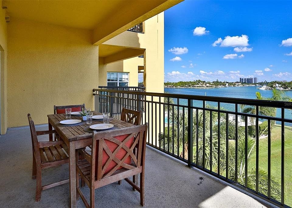 Beautiful Intercoastal waterway views! Don't miss out on this prime corner unit. PALMS OF TREASURE ISLAND BUILT IN 2007/2 bedroom 2 full baths. Updated Luxury vinyl flooring, Everything you need in the kitchen with granite countertops. Plenty of natural light throughout this open floor plan. In-unit washer/dryer. This is a TURNKEY waterfront luxury unit on the intercoastal and a walk across the street to the Gulf of Mexico to the best beach on Treasure Island with plenty of shopping and restaurants. Beautifully landscaped surroundings with a waterfront thermo-heated pool and spa. Under building parking and plenty of guest parking. Add this to your 401K. Monthly condo fee includes Cable TV, Escrow reserves fund, Insurance, Internet, Maintenance Grounds, Water and trash removal. Perfect beach getaway and/or rental property!