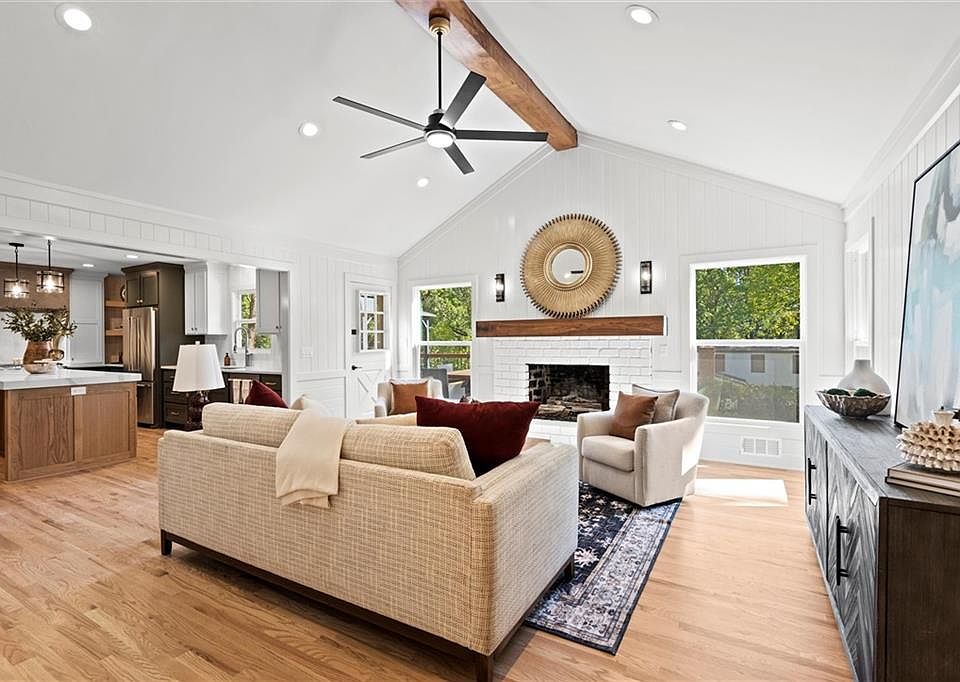 Villa style living could be yours before the holidays! Boasting a ranch/reverse 1.5 story floor plan, every inch has been thoughtfully renovated with modern touches yet timeless style. This home offers 4 spacious bedrooms and 3.5 pretty as a picture bathrooms. You will fall in love with the built-in's, custom crafted cabinetry, vaulted ceilings, flexible floor plan, designer touches and everything is NEW! Stunning double front doors and bright foyer showcase french doors leading into a stately office or den. Enter the gorgeous vaulted living room and hearth flanked by windows overlooking the half acre yard complete with a freshly stained deck, pergola and firepit too. The custom kitchen has a grand quartz island, gas stove with hood, floating shelves and walk in pantry. It leads into everyone's favorite breakfast/dining room. Holiday dinners will be perfect in here when everyone gathers around the table and grabs a drink and an appetizer from the built in buffet with arch and floating shelves. The primary en suite also has a sitting area and walk in custom closet with stackable hook-ups. The shower is the star in the primary bath. There is one additional large bedroom on the main level with full hall bath showcasing a soaking tub, separate shower and double vanities. The expansive walkout/walkup lower level has room for everyone including the two remaining bedrooms, well appointed full bathroom, large laundry room, and a lovely kitchenette. Do not miss out on the opportunity to own a rare gem in one of Leawood's most desirable locations and neighborhoods. Seller is ready for an offer.