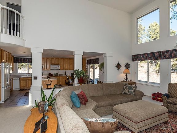 Beautiful Joyce-Built Home Nestled Among 2.645 Acres of Gently Sloped Ponderosas * Home Constructed In 1999 For These Original Owners * Dramatic 17 Foot Ceilings & 6 Enormous Belgard Windows In Great Room Virtually Bring The Tall Pines That Surround This Home Inside Your Home * Open Design Flows From Entrance To Great Room w/ Open-To-Below Balcony * Main Floor Master Suite w/ 5 Piece Bath And Dual Walk-In Closet Doors * Updated Gorgeous Iron Light Fixtures * Kitchen Appliances Include 2-Year Old Side-By-Side Refrigerator w/ Double-Oven & Cooktop * 42" Raised Panel Kitchen Cabinets w/ Matching Cabinets In Master Bath & Laundry * Three HUGE Bedrooms Upstairs w/ Full Bath * Separate Formal Dining w/ Bay Window Plus Kitchen Eating Space * Southern Exposure Driveway For Easy Snow Removal * 2 Furnaces Plus SEC Window Film For Glare/Fading Reduction * Full Basement w/ Structural Floor & Vapor Barrier * Flagstone Fire Pit Area * Spacious Timber Tech Deck For Outdoor Living Area * Clean & Neat!