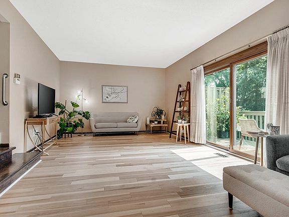 Welcome to the largest, move-in-ready end-unit in the highly coveted Berkshire community located in West Bloomington. Your new home features a newly renovated kitchen with high-end appliances, custom built quiet close cabinets, and lovely quartz countertops with a large center island. The main floor is gleaming with natural light coming from your two spacious decks. Entertaining will not be a problem with the large living and dining room spaces on the main floor. Upstairs features newly carpeted stairs, new LVP in bedroom two for a fresh, bright room, beautifully maintained hardwood floors in the loft space, and a generously sized owner's suite. The lower level features a mid-century modern fireplace wall with soaring vaulted ceilings, and a full walkout to a large, association-maintained backyard. Don’t miss out on the best unit within the Berkshire Association!