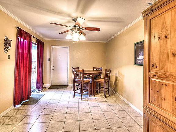 Move in ready and updated throughout! Private patio. Formal dining room plus oversized eating area in kitchen perfect for table and/or office or second living area. Stainless steel appliances with tile backsplash. Master upstairs with private bath and two large bedrooms with hall bath. Newer washer and dryer and refrigerator will stay and new inside and outside hvac unit! outside storage room and nice fenced patio