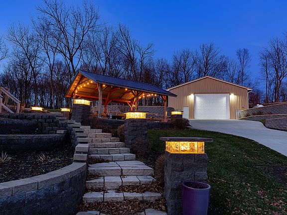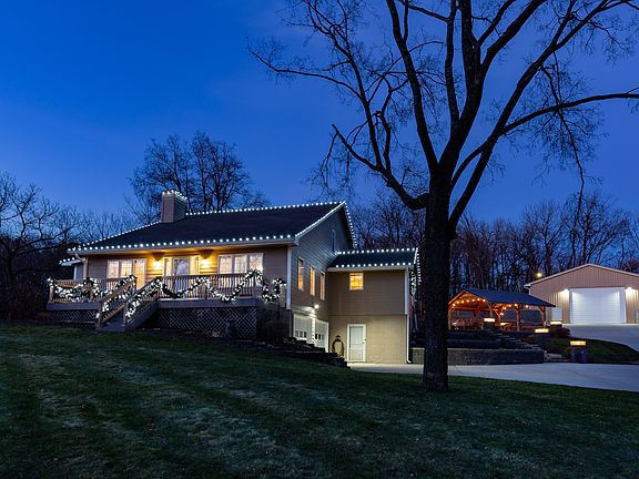 Serenity found! Here is your new home in the most peaceful setting. Set on almost 6 acres this beautiful home offers a park like setting surrounded by trees. As you look around you will see beautiful retaining walls with light up pillars leading you towardsa maintenance free deck with hot tub and large covered patio which is perfect for entertaining. Inside this beautiful home you will enjoy time in your huge master bedroom with his and her closets. Plus newly remodeled master bath with tile shower/steam shower and clawed bathtub. Large dining/living area with wood burning fireplace and rec room/den/man cave with plenty of room for a pool table, card table, and tv's for watching the big game. Have hobbies or big toys? This home offers a 5 car detached garage PLUS a 2,400 sq ft pole building fully finished with insulation, heat & AC. New septic (2016), new gas stove, washer/dryer (2019) and a ton more updates you need to ask your agent about! Want your own sanctuary? This is the one!