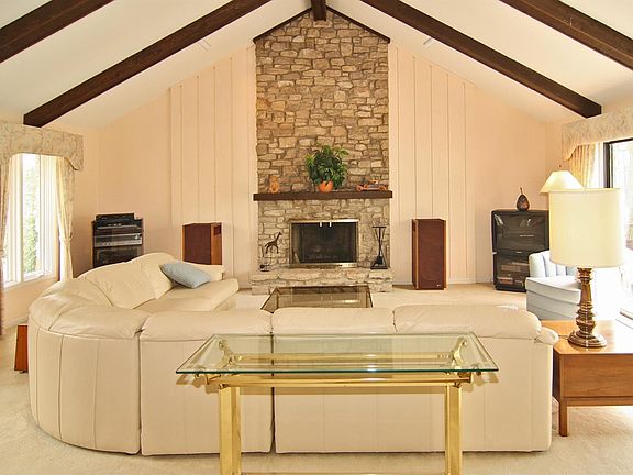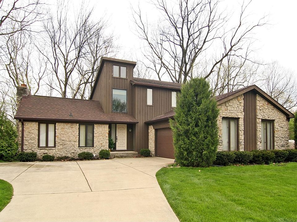 Professionally maintained landscaping, creek & mature trees provide park-like setting for this 0.6 Acre property on cul-de-sac. Floor-ceiling stone wall fireplace & cathedral ceiling in Great Rm provide spacious entertainment area. Patio doors lead to large deck from Great Rm & Eat-In Kit; 2nd deck from Master & to patio from Walk-Out Bsmt. Master w/Ensuite Bath & huge walk-in closet. Partially Fin Bsmt w/potential 4th Bdrm/Family Rm & Bath. Nbhd amenities: Woodland clubhouse, pool & tennis.