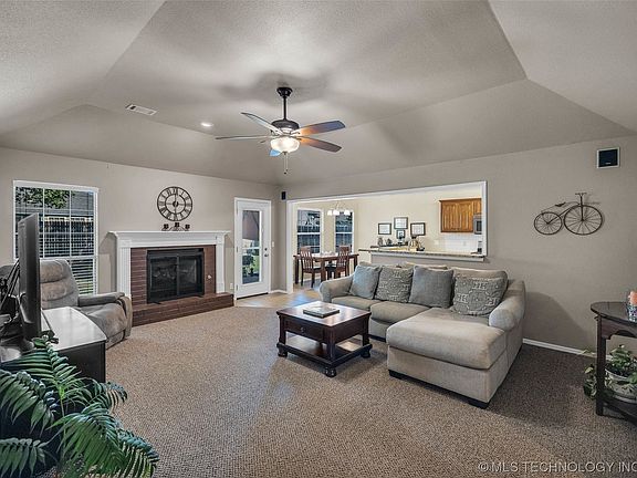 Perfect 1 level, Bixby East Elementary Home near 111th and Mingo; Lots of updates completed / movein ready, Terrific Open Vaulted Living Room-Dining-Kitchen; 3 Spacious bedrooms with large Primary Suite with Bay window. All have walkin closets. Fabulous Granite Counter Kitchen with pantry, bar area, & Stainless appliances. New Paint Inside and out; Renovated Bathrooms and Kitchen in 2014. Wood Burning fireplace with gas logs. Replaced HVAC in 2018, updated Hot Water tank, & added Shed with concrete floor & concrete sidewalk from front to backyard. Cozy covered front porch; New back door and back storm door 2022. Super yard and landscape. Easy access to Most of Tulsa, Bixby and Broken Arrow via the Creek and BA Creek turnpikes, 169 and Riverside / 121st. Fantastic Shopping, Restaurants, Fitness Center and Medical Care within a 5 mile Radius. Award winning Bixby School District.