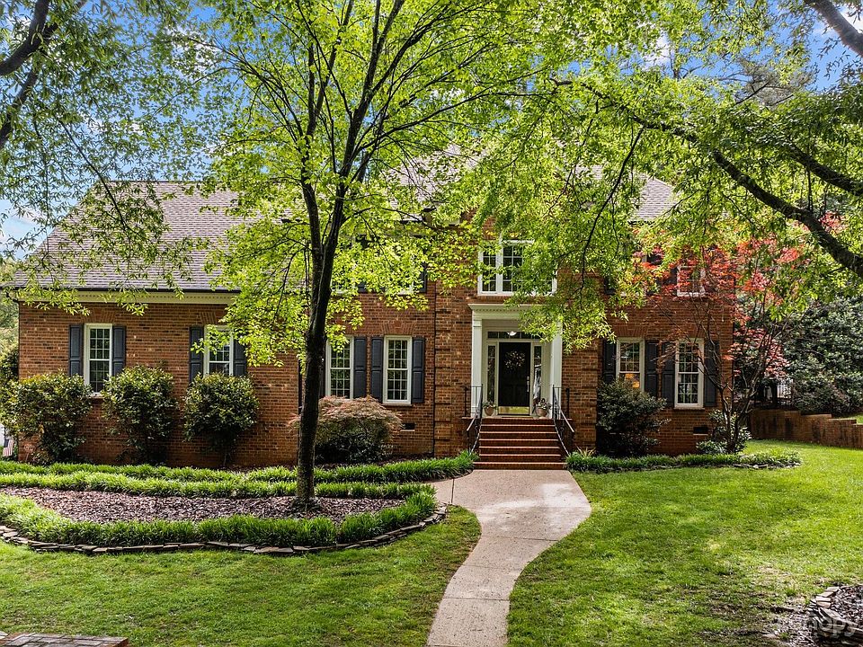 MULTIPLE OFFERS-PLEASE SUBMIT BY 5:00PM 5/8. Handsome full brick home in desirable south Charlotte community Berkeley! 4 Bed+Bonus Rm, 2.5 Bath. Hardwoods throughout most of main, upstairs hall & primary bedroom. Kitchen updated in 2018 w/new countertops, gas cooktop, wall oven, microwave & recessed lighting. Breakfast area boasts a vaulted ceiling w/skylights. Kitchen, breakfast & great room create one large open area. Wet bar w/wine fridge. Living Room makes for a great office-just add French doors. Large primary suite has a newly remodeled spa-like bath featuring a free-standing soaking tub & oversized tile shower. Seller finished the walk up attic to create a flex/exercise room with its own split HVAC unit. Bonus room w/back staircase leading to kitchen. Roof & Gutters (2014), Windows (2013), Spray foam insulation (2020). Private fenced backyard w/extended patio. Enjoy summer nights with a glass of wine sitting around the gas firepit. Walk to shopping & dining. Top rated schools