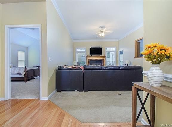 Rare One Story in established community within walking distance to Starbucks and target, mins from Birkdale and I-485 4 spacious bedrooms, 3 full baths + office space this home provides lots of room to move around. Improvements include updated roof, vinyl replacement windows throughout, HVAC, Rheem 50 gallon hot water heater, updated toilets, and updated master bath. Wide-open kitchen with lots of cabinets and granite island gets great light. Fridge, washer, and dryer may remain. Huge laundry room with lots of storage space. Volume ceilings throughout and lots of natural light. Almost 1/3 acre lot is fenced and also has a separate fenced area for a garden. 10x16 storage building for all your yard tools. Enjoy the private, oversized patio this summer. Large Two bay garage...one bay with door to the side yard could be a workshop. Level lot with expanded driveway for extra parking. Top rated schools!