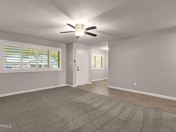 Welcome to your oasis in the heart of this Peoria adult community! This 2 bedroom, 2 bathroom gemini home boasts 1301sqft of comfort and simplicity. Step inside to discover a neutral color palette ready to be decorated with your style! This home features white shutters adoring the windows at the front and back, an updated eat-in kitchen and bathrooms. One of the highlights of this home is the expansive Arizona room in the back, bathed in natural light, providing the perfect space for relaxation or entertaining guests. Step outside to the quiet patio overlooking a lush, grassy green belt, perfect for your morning cup of coffee! This home is nestled in an active and pet-friendly neighborhood, which can offer a sense of community. Conveniently located near Park West, Westgate Entertainment District, and SR 101, you'll have easy access to shopping, dining, golfing and entertainment options.