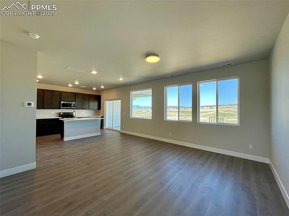 The Poplar floor plan is designed for modern living with an open concept layout that seamlessly integrates the great room and kitchen. This 3-bedroom, 2.5-bathroom townhome offers Front Range views, a covered patio, and low-maintenance landscaped yard maintained by the HOA. The kitchen features a center island, pantry, stainless steel appliance package, quartz counters, and LVP flooring, perfect for both everyday living and entertaining. The primary bedroom offers a large walk-in closet and en-suite bath that includes dual sinks, quartz counters, and a stand-alone shower with tile surround and bench seat. The upper level also includes two additional bedrooms, a full bathroom, and conveniently located laundry room. Enjoy all the amenities of Wolf Ranch, including parks, trails, Wolf Lake, and easy access to top-rated D20 schools. Ready March 2025!