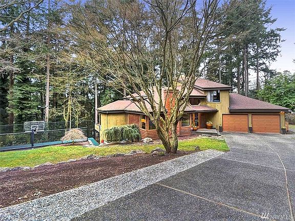 Located on a cul-de-sac, the tree lined driveway invites you to this exquisitely appointed home situated on a large street to street lot with mature trees for a truly private setting. Upon entering this outstanding home the quality finish work will stand out from the chef's kitchen, to the master bath, to other details such as paint choices, electric awning over deck, high end carpeting, & more! The grounds feature a lighted sport court & a detached office/artist's studio you must not miss!!!