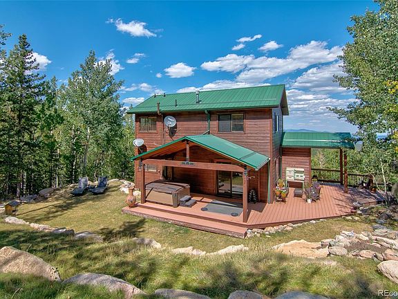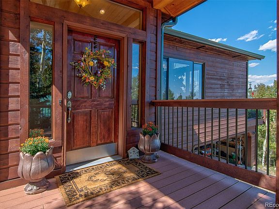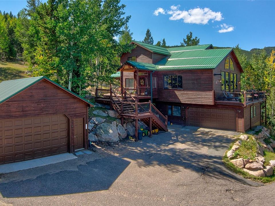 Serenity awaits you on this sunny private multi-level mountain contemporary custom home sitting on 5.9 beautiful acres. Come home to complete privacy and majestic views of the Continental Divide, Summits of Rocky Mountain Park and Longs Peak including Down-town Denver views to the Northeast. Enjoy these views from the floor to ceiling windows in Livingroom, Dining Room OR Walk-out to full wrap Deck. Retreat to the Huge Master suite with walk-out to covered patio and grassy yard. Relax to the sound of the cascading water fall. This home features a completely remodeled Master bath with high-end cabinets and top end delta fixtures, quartz counters and faux marble luxury vinyl tile in shower. This home is perfect for working in-home w/two separate office areas. Head downstairs to watch a movie or take in a football game in the cozy den and 3/4 bathroom for all your guests. Walk-out to the 2 car oversized attached garage w/ extra storage plus a 2+ car detached garage/shop w/built-in shelving. Metal Roof, Covered Back Patio, Composite Decking, Large Mud Room. Hurry! Bring your offer today and move in before the holiday season begins.