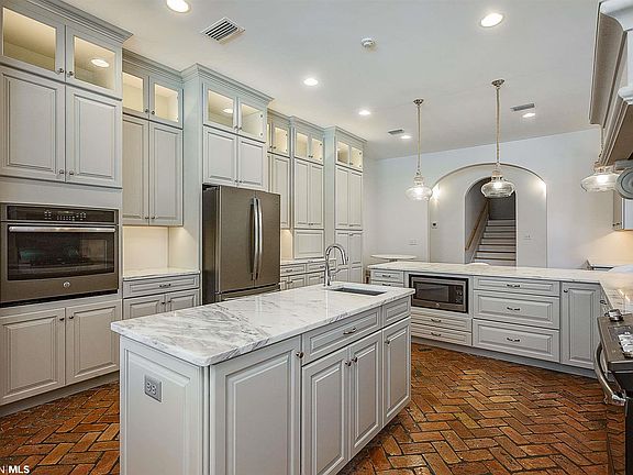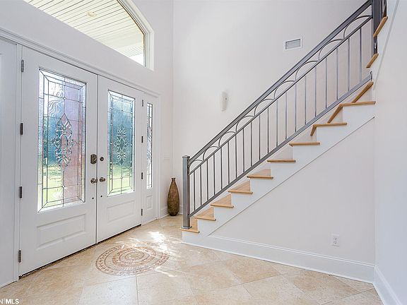 This Lillian home is beautiful with a grand entrance and living room that feature soaring 20' ceiling heights and iron rail balconies. Attractive stone gas fireplace. Over 6700 square feet of living space which includes spacious bedrooms and Bathrooms. Gourmet kitchen with gas and electric cooking, walk-in pantry, prep island, coffee bar with mini fridge, eating bar, breakfast nook and formal dining room. Step into luxury with the Master suite that features a custom stone, tile and marble walk-in shower, oversized jetted tub and double vanities. Choose either of the two beautiful oak staircases to take you to the second floor where you'll find the guest bedrooms, guest suite with private bathroom, second laundry room and rec room with plush carpet and tongue and groove walls. Up to the 3rd floor, there is a large bonus room with private bathroom. The interior of the home was completely renovated and finished in February 2018. Not only beautiful but incredibly well constructed, insulated and efficient with solar water heater and high efficiency systems. An entertainer's dream with nearly 4,000 square feet of screened-in outdoor living and dining space, complete with massive 20'X40' swimming pool with jetted cozy coves, full bathroom and an outdoor grilling kitchen. There is a feeling of quiet country when you walk outside to enjoy the open air or shoot some hoops on the large concrete basketball court. Attached climate controlled 2 car garage. Detached 30'X52' (1,560 square feet) workshop/ garage. Great for horses. Boaters and Beach lovers, this home is 4 miles from the Lillian Boat Launch. Nearest Gulf Beaches include Johnsons Beach FL, Orange Beach, AL and Gulf Shores, AL. Easy commute to South Baldwin Regional Medical Center, Pensacola, Pensacola NAS, US 98, Foley and the Beach Express.