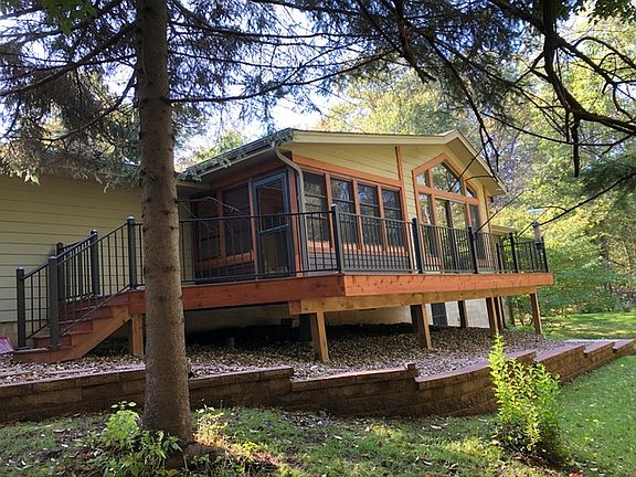 This updated, well kept craftsman style w/out rambler sits on 4 wooded acres. The main floor features open concept kitchen, dining and living room areas with wood and heated tile floors throughout. Two BR's, A large Laundry, a mudroom, storage room, 3season porch & full bath complete this level. The W/out level provides 2 more BR's, 2nd bath, familly room &large office/ storage room. Other amenities include Anderson windows, wood burning fireplace up and wood burning stove down, geo-thermal heat/AC, three+ car attached garage,brand new deck & large fenced in back yard. Any realtor who brings in a buyer will receive a 2.5% commission.
