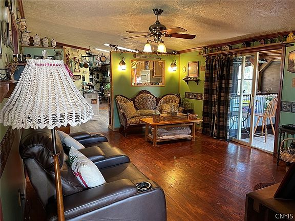 Welcome home to this spacious 2,128sq ft country home, all on one floor, with endless possibilities! Move-in ready, this home sits on a flat 2.36-acre lot that includes a heated detached 2 car garage with a storage attic & lean-to, 16x16 shed, pool hook up ready to go & an outdoor tiki bar/gazebo located next to a well-kept koi pond & fountain surrounded by charming landscaping. Inside you will find a great mud/laundry room with storage, 2 sizeable living rooms, an attached bar room with a dry bar that has removable panels so it can be open to the outdoors in warmer weather, a country kitchen that flows into a formal dining area, 3 good sized bedrooms all with direct access to bathrooms & custom closets, & a large primary bedroom with its own bath and bonus room attached currently being used as a craft room but could make a roomy walk-in closet. Located less than a mile away from ATV trail entrance and a short drive to Lake Ontario. ~OPEN HOUSE April 30th~ Showings delayed until 4/28 ~Negotiations delayed until 5/3~ 2022-07-07