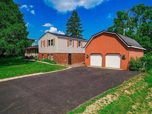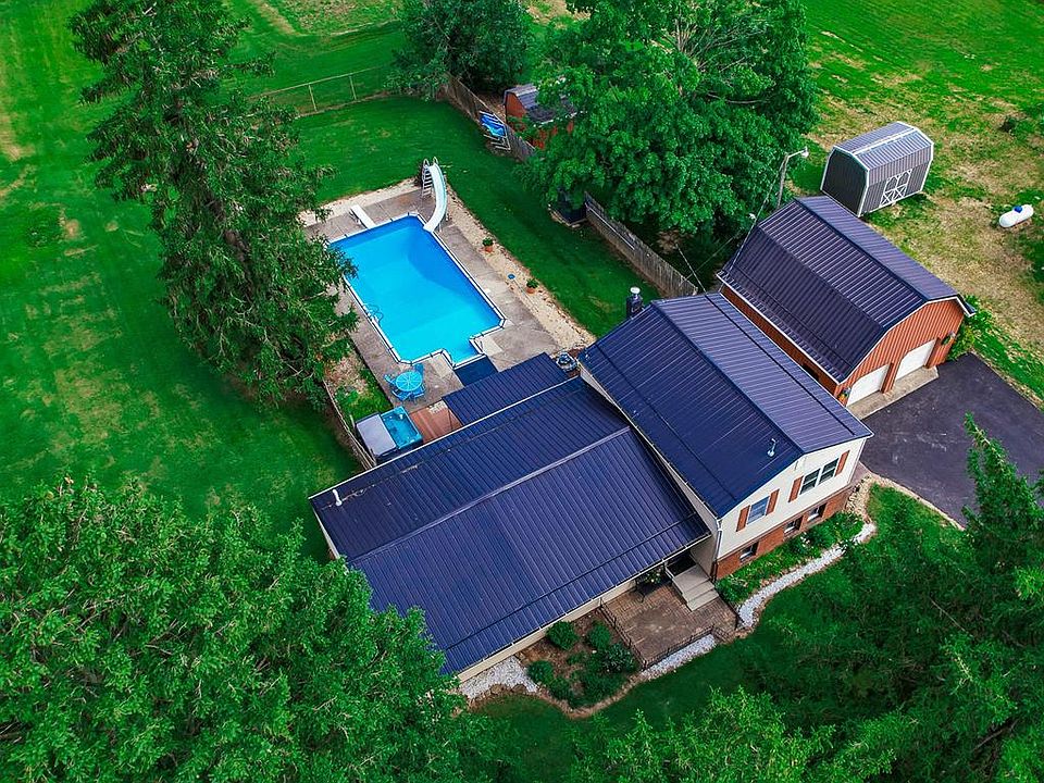 OPEN HOUSE Tuesday July 11th from 5-7 PM This turnkey split level home offers immediate possession at closing so you'll have plenty of time left to enjoy the beautiful 16x32 inground pool & hot tub! Situated on a 1 acre lot just minutes from town, this multi-level home boasts numerous updates throughout! The inviting open concept main floorplan includes refinished hardwood floors, new ceramic tile & an updated kitchen complete with granite countertops. The large adjacent bonus room includes a 1/2 bath and french doors for pool access and could easily be converted to a 4th bedroom/main floor primary suite. Upstairs you'll find 3 bedrooms and updated full bathroom. The lower den area offers a laundry room, 2nd half bath and an abundance of storage space. Additional amenities include a fenced yard, adorable 24x24 2 story garage, 8x12 shed, pellet stove installed in 2020 and AC installed in 2018. Pool updates include new pool cover in 2018, liner in 2020, pump in 2021 and filter in 2022.