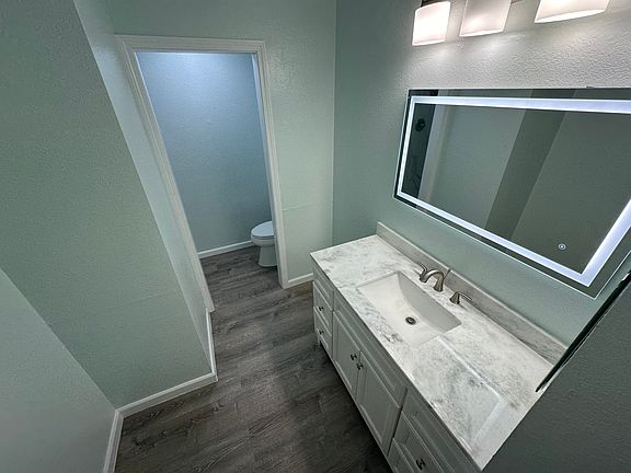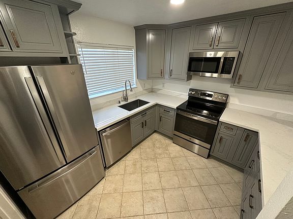 Fresh paint throughout, New floors, Enclosed patio in the back, Oversized one-car garage (New garage door to be installed before move in), updated Kitchen & bathrooms Renter is responsible for Gas, Electric & Water