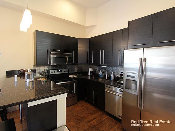 The PERFECT BU apartment - Located on Commonwealth Ave and right across the street from campus. Amazing location. Open-concept kitchen-living space; the kitchen is separated from the living room by a breakfast bar-- perfect for entertaining. Stainless steel appliances include dishwasher, built-in microwave, two-door refrigerator/freezer, and stove. Gleaming hardwood flooring throughout. Great bedroom sizes. Free laundry in unit. This will not last. Call for a showing today.