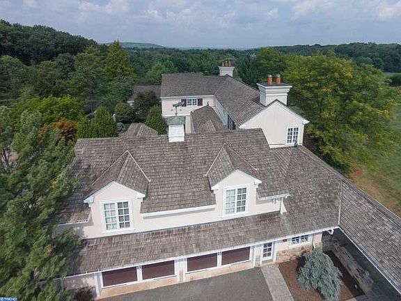 On one of the more beautiful country roads in Bucks County sits High Point. This iconoclastic French Country style home welcomes you with a formal entrance flanked by two impressive lanterns. The meandering drive delivers you to the formal auto court and your first glimpse of the home. The front entrance offers a unique gazebo that is perfect for evening cocktails with friends or family and is perfect to view the gardens of this 12 plus acre estate. The entrance foyer leads you to one of the most expansive Great Rooms showcased in a home today. This Great Room contains living room area with fireplace, formal dining room area and open kitchen. Newly finished flooring is glistening in the daylight. The kitchen contains all high-end appliances including an AGA stove containing 4 ovens. There is a butler's pantry with a commercial grade Viking range, a second dishwasher, and a second Subzero refrigerator/freezer. High Point contains within its 10,500 square feet, 5 bedrooms, numerous baths, a caretaker's apartment, finished lower level and wine cellar capable of holding over 6,000 bottles of your favorite vintage. The grounds are impeccably landscaped and are surrounded by 50 acres of open space. When you grow tired of viewing the same large, cookie cutter, Center Hall colonials, it's time to visit High Point and experience the beauty and imagination of what true customization can create.