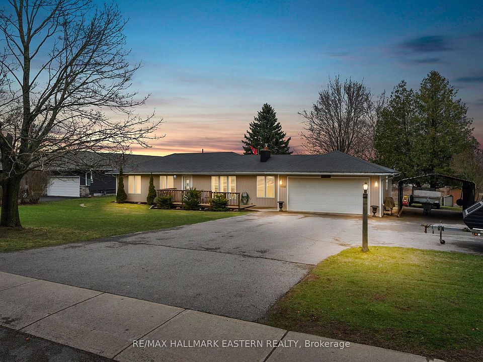Bridgenorth. Welcome to this beautifully maintained 3-bedroom, 1400 sq. ft. ranch-style bungalow in Bridgenorth, Ontario. Nestled in a highly desirable hamlet, this home is perfectly situated to capture breathtaking views of Chemong Lake and surrounding farmland, offering the perfect blend of comfort, convenience, and charm. Designed for ease of living, the single-floor layout with virtually no steps makes this an ideal home for retirees, downsizers, or anyone seeking accessible main-floor living. Key Features: Spacious living room with a cozy gas fireplace, perfect for family gatherings or quiet evenings. Generous primary suite with its own private deck, hot tub, and firepit, an inviting space for morning coffee or evening relaxation under the stars. Convenient main floor laundry, eliminating the hassle of stairs. Heated double garage (540 sq. ft.) with direct entry into the home for year-round comfort. Large paved driveway providing ample parking for family and guests. Additional Highlights outdoor storage sheds for tools and equipment. Crawl space with 5 foot clearance, ideal for extra storage. Expansive outdoor living space to enjoy peaceful country views and lake breezes. This Bridgenorth bungalow near Chemong Lake offers the best of both worlds: a picturesque setting and close proximity to shops, restaurants, schools, and essential amenities. Don't miss your chance to enjoy the ease of single-level living in one of the Kawarthas' most sought-after communities.
