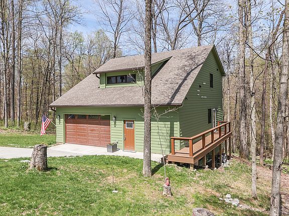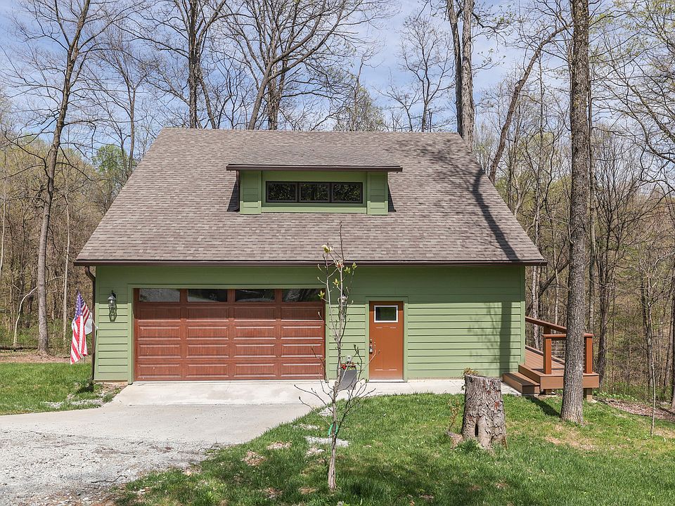 The earthiness of this modern carriage house style home is beautifully designed for luxurious comfort and traditional functionality while blending seamlessly with it's surroundings. The rich wood tones on the garage, trim and Trex decking add warmth while the pitched roof and decorative dormer windows lend a classic, architectural elegance. The great room offers a gas log fireplace and is open to the built-in, bay windowed breakfast area and bar. The well-appointed kitchen features quartz countertops, 48" soft-close cabinetry, stainless appliances and a pantry. A convenient laundry room and spacious full bath round out the main level. The bedrooms upstairs offer secluded privacy and the full bath includes double sinks and a full-size walk-in pebbled floor shower. The oversized 2-car garage is finished and has lots of space for hobby or exercise. All of this on 1.34 wooded, private acres. No HOA and a location that can get you anywhere in 30 minutes or less just reinforces the need to call this property your home.