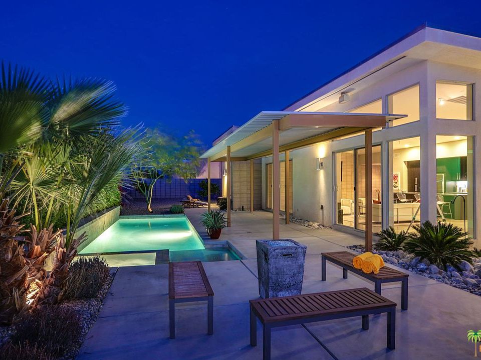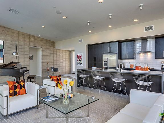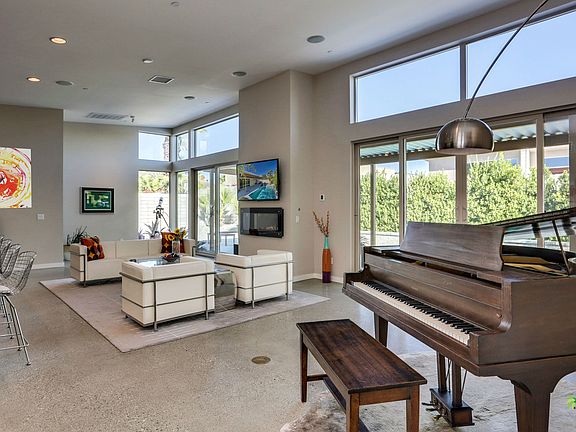 Live in contemporary luxury in Murano. This gorgeous property has everything a discriminating homeowner could possibly want. Modern and sleek architectural elements surround you in sophisticated style. Warm, natural light permeates every room but offers the ultimate in privacy. Entertain in style in the open concept living space. Quartz countertops, stainless upgraded appliances and large sink complete the gourmet kitchen. Gaze outside your walls of glass into your backyard sanctuary before taking a dip in the sparkling Pebble Tec pool and spa. The Zen-like master suite has a huge walk in closet, oversized shower and large tub to soak in. The home features owned solar panels, tankless water heater, high efficiency HVAC units, wonderful laundry room, low-water desert landscaping, citrus trees and so much more. In addition to the large 2-car garage, you have a 30 AMP RV charging outlet. Note that some images here have been digitally staged with artwork to give a sense of scale.